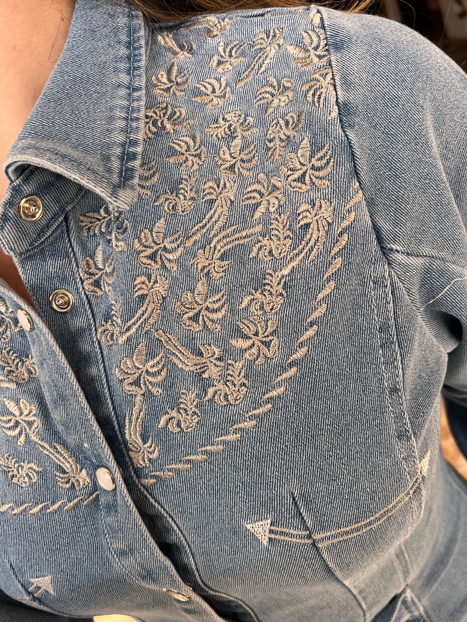 -Statement denim dress ft. Embroidery on the chest and hem.